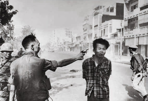 Фотография офицера Южно-Вьетнамской армии, стреляющего в голову закованного в наручники заключенного, не только получила пулитцеровскую премию в 1969 году, но и также окончательно изменила отношение американцев к тому, что происходило во Вьетнаме. Несмотря на очевидность изображения, на самом деле фотография не так однозначна, как показалось простым американцам, преисполнившимся сочувствием к казненному. Дело в том, что человек в наручниках – капитан вьетконговских «воинов мести», и в этот день им и его подручными было застрелено множество невооруженных мирных жителей. Генерала Nguyen Ngoc Loan, изображенного на фотографии слева, всю жизнь преследовало его прошлое: его отказывались лечить в австралийском военном госпитале, после переезда в США он столкнулся с массированной кампанией, призывавшей к его немедленной депортации, ресторан, который он открыл в Вирджинии, каждый день подвергался нападению вандалов. «Мы знаем, кто ты такой!» – эта надпись преследовала генерала армии всю жизнь