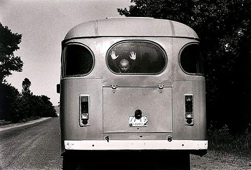 Май 1995. Чечня. Молодой мальчик выглядывает из автобуса, загруженного беженцами, которые сбежали из эпицентра войны между чеченскими и русскими войсками, рядом с Шали, Чечня. Беженцы направляется в Грозный в надежде найти спасение там…
