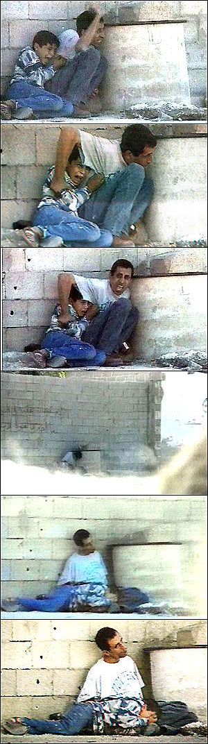 Смерть мальчика Аль-Дуры, снятая репортером французской телевизионной станции в момент, когда он застрелен израильскими солдатами, будучи в руках своего отца. Портрет “шахида” аль-Дуры распространился в марках, книгах, песнях и постерах. Но еврейские активисты во Франции, усомнились в достоверности снимков и ведут упрямую компанию, тянущуюся уже несколько лет, требуя, чтоб французское телевидение раскрыло также те части съемки, которые не попали в трансляцию. По их словам, неопубликованная часть съемки показывают, как палестинцы тренируются в инсценировании инцидента стрельбы, в результате которой якобы был убит аль-Дура.