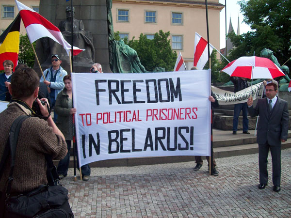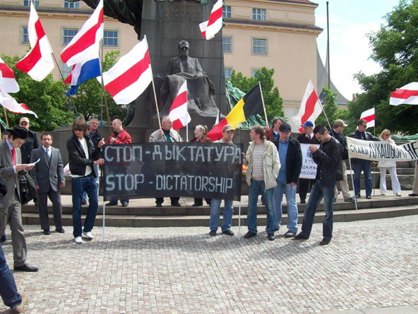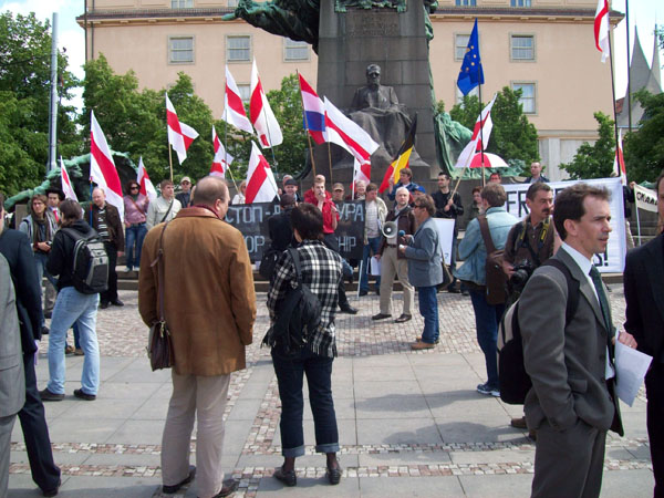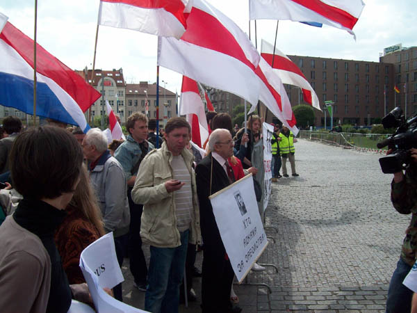 В митинге, шествии и пикетировании Конгресс-центра, где проходил саммит, приняли участие более ста белорусов. Они держали транспаранты «Нет диктатору Лукашенко в Европе!», «Нет диктатуре!», «Свободу политзаключенным Беларуси!», национальные бело-красно-белые флаги и флаги гражданской кампании «Европейская Беларусь».