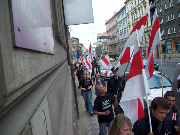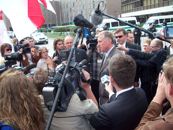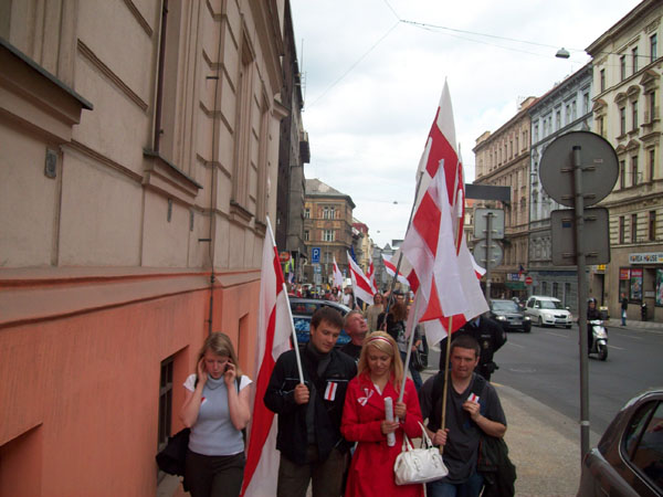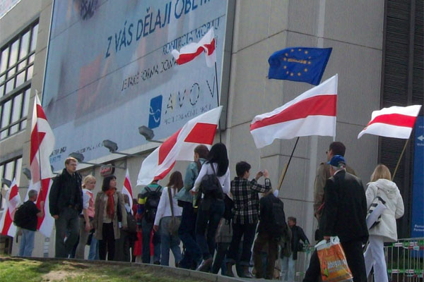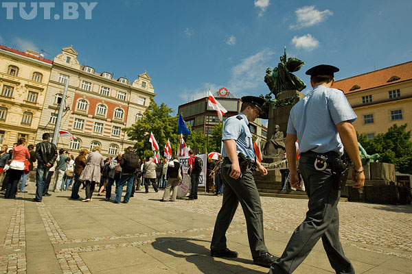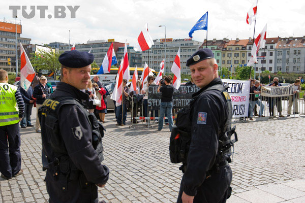 Премьер-министр Чехии Мирек Тополанек вышел к участникам акции протеста и заверил их в том, что Европа не поступится демократическими принципами в сотрудничестве с Беларусью.