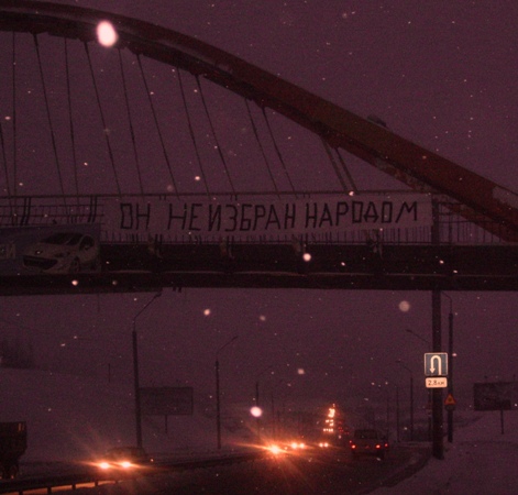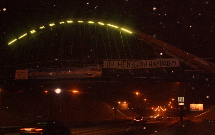 Растяжка провисела несколько часов на одной из главных артерий города. Ее могли наблюдать сотни автолюбителей и горожан.