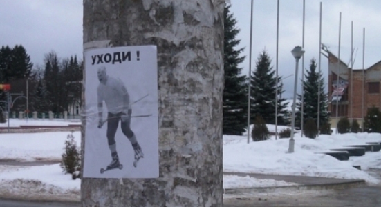 Активисты “Европейской Беларуси” с нежностью клеели портреты “любимого вождя”.