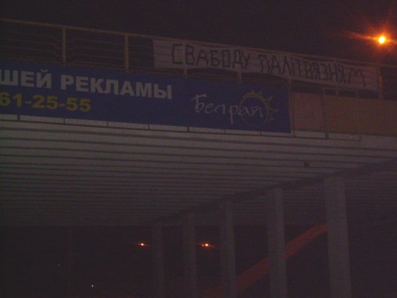 Сення актывісты грамадзянскай кампаніі "Еўрапейская Беларусь" вывесілі у Магілёве банэр з патрабаваннем вызваліць палітвязняў.