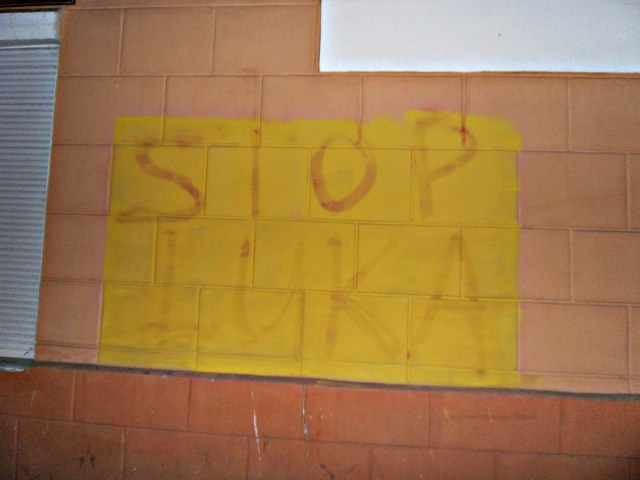 Малюнкі, зробленыя чырвонай і сіняй фарбай на агароджах, гаспадарчых прыбудовах і прыпынках, адразу зьвярнулі на сябе ўвагу гараджанаў.