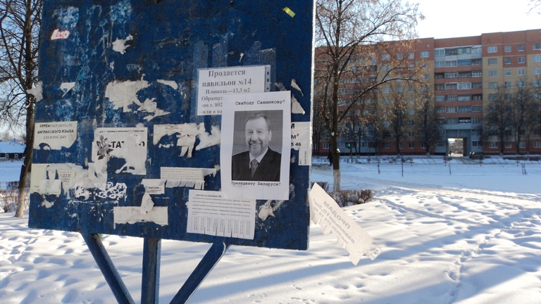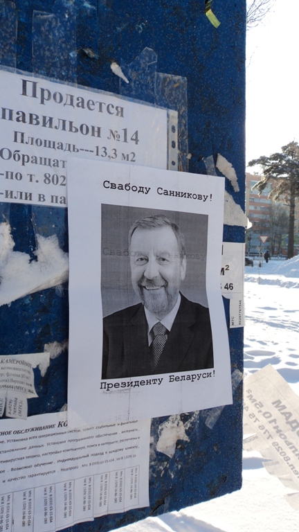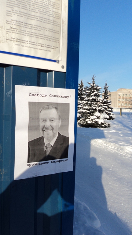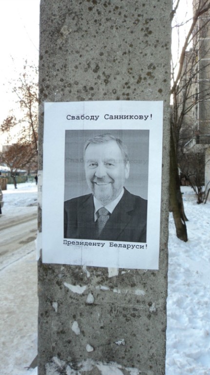 Плакаты “Свободу Санникову – президенту Беларуси!” были развешаны активистами у главного входа на городской стадион и других публичных местах города.